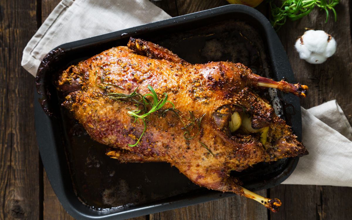 Kachní paté, husí stehno s dvojím zelím i švestkový knedlík s vanilkovým krémem a k tomu mladá svatomartinská vína.